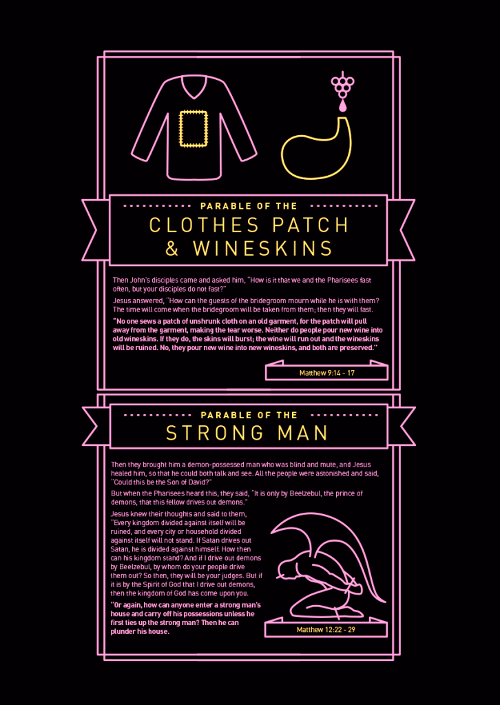 Not able to implicate Jesus in the disrepute of their own spiritual disciplines, they then pointed the finger at his disciples as to why they don’t fast, while they do. Jesus’s answer about the bridegroom is self-explanatory if not prophetic in predicting his own death, but he then follows it up with two quick and loaded illustrations.
