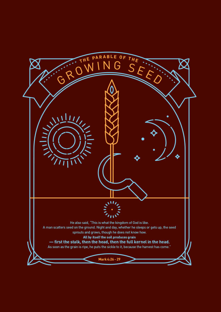 In Mark’s account this parable is sandwiched between two others, the parable of the lamp on a stand and following is the parable of the mustard seed. When viewed as a trilogy it is clear that all three parables have to do with the growth of Christ’s church, made up of individual members.